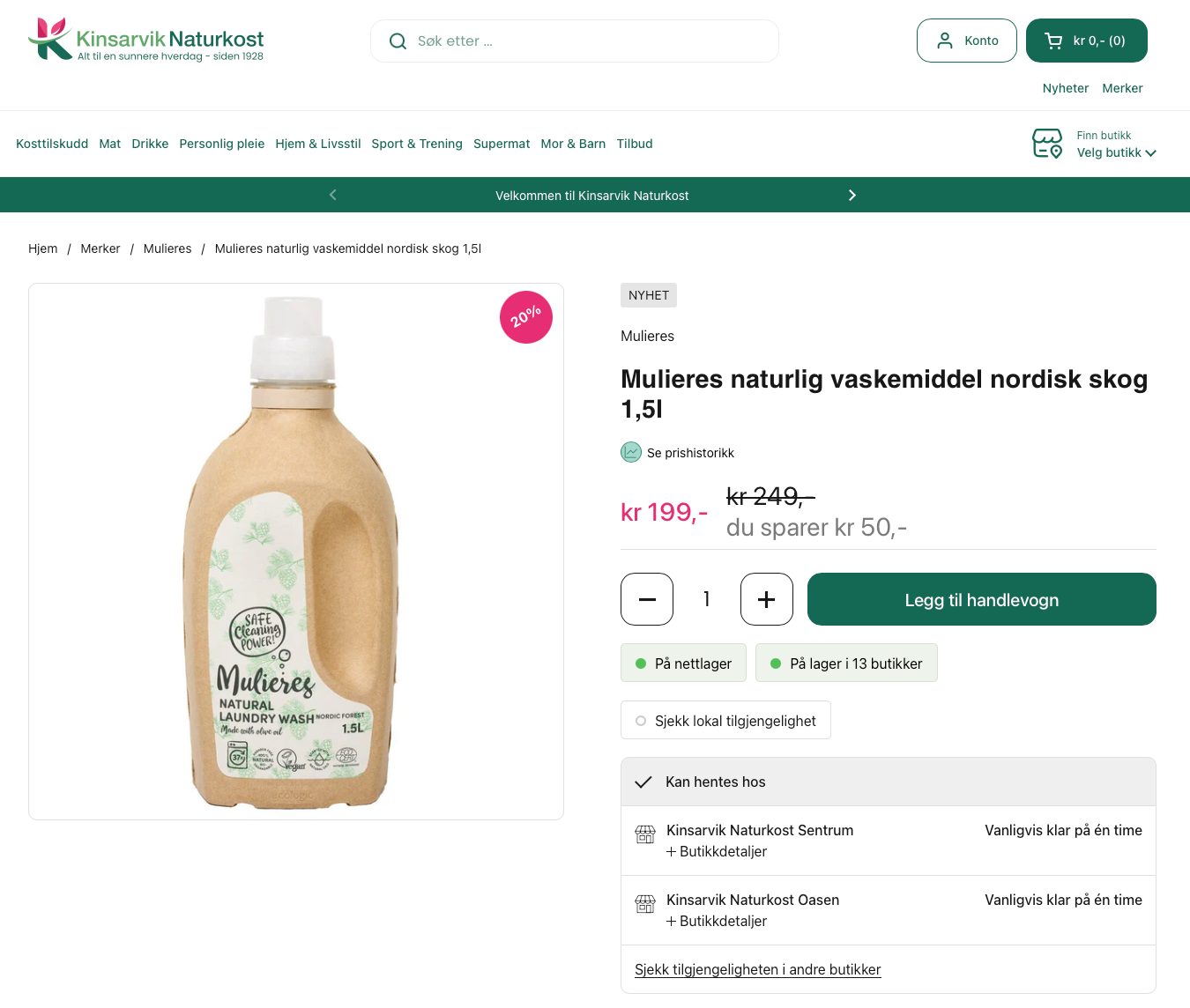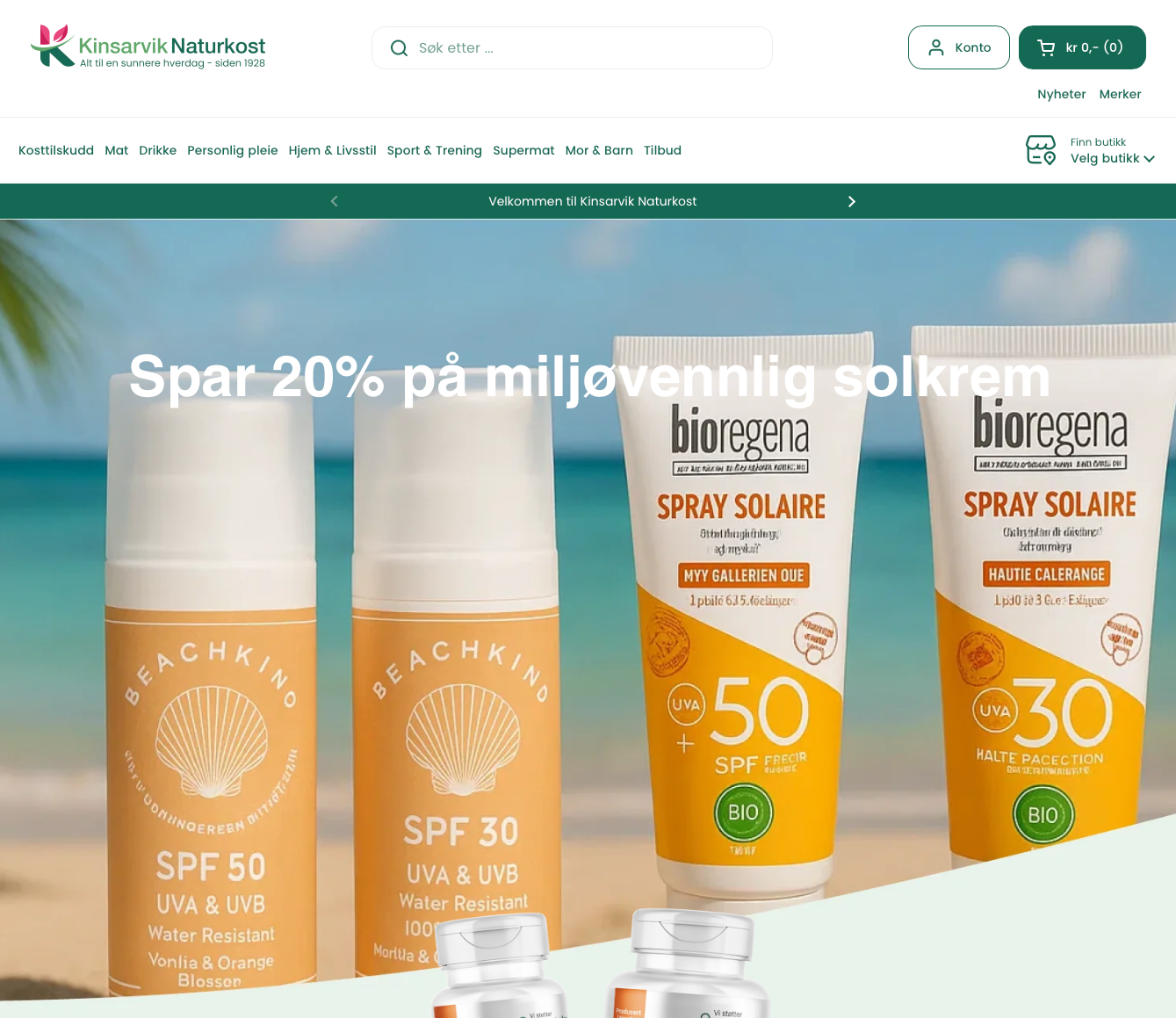 Kinsarvik.no er blant landets mest etablerte helsekostkjeder, med 17 egne butikker, franchisepartnere og over 6 000 produkter i sortimentet. Appsalon leverte en fullverdig Shopify Plus-løsning som kombinerer effektiv netthandel med moderne butikkdrift.